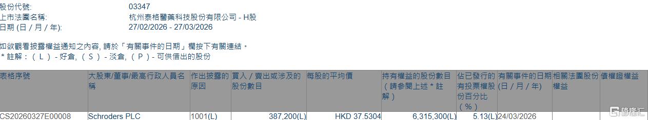 泰格医药(03347.HK)拟3月30日举行董事会会议审批全年业绩
