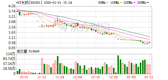 股市必读:*ST长药(300391)1月19日收盘跌18.52%,今年累计跌幅已超20%