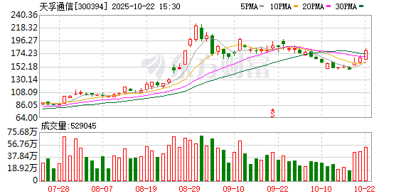 | 权益类证券大宗交易(协议交易) | | | | | | | 团 下载 | | --- | --- | --- | --- | --- | --- | --- | --- | | 交易日期 | 证券代码 | 证券简称 | 成交价格 (元) | 成交量 (万股/万份) | 成交金额 (万元) | 买方营业部 | 卖方营业部 | | 2025-10-22 | 300394 | 天孚通信 | 138.50 | 2.46 | | 340.71 中国银河证券股份 | 国投证券股份有限 | | | | | | | | 有限公司杭州市心 北路证券营业部 | 公司浙江分公司 | 10月22日,天孚通信大宗交易成交2.46万股,成交额340.71万元,占当日总成交额的0.04%,成交价 138.5元,较市场收盘价178.55元折价22.43%。 ...