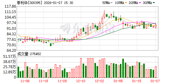 投资评级与核心观点 - 报告给予菲利华“增持”评级,目标价格为130.42元 [6][13] - 核心观点:公司2025年利润端预计强劲复苏,超薄石英电子布产品已实现小规模收入,作为航空航天石英龙头,其业务正向电子电路用电子布等高端领域拓展,具备技术优势和稀缺性 [2][13] 财务业绩与预测 - **2025年业绩预告**:预计实现归母净利润41,200~47,200万元,同比增长31.12%~50.22%;预计扣非净利润37,000~43,000万元,同比增长40.04%~62.75% [2][13] - **收入预测**:预计营业总收入2025E/2026E/2027E分别为20.33亿元、29.80亿元、44.35亿元,同比增长16.7%、46.6%、48.8% [4] - **利润预测**:预计归母净利润2025E/2026E/2027E分别为4.48亿元、8.51亿元、13.90亿元,同比增长42.6%、90.0%、63.3% [4] - **每股收益预测**:2025E/2026E/2027E的EPS分别为0.86元、1.63元、2.66元 [4][13] - **盈利能力指标**:预计销售毛利率将从2024A的42.2%回升至2025E的46.0%,并持续提升至2027E的56.5%;净资产收益率(ROE)预计从2024A的7.6%提升至2027E的21.0% [14] 业务进展与驱动因素 - **电子布业务突破**:公司研发的超薄石英电子布产品正处于客户端小批量测试及终端客户认证阶段,2025年上半年已实现销售收入1,312.48万元 [2][13] - **下游需求回暖**:业绩增长主要受航空航天领域需求回暖、订单恢复,以及半导体行业景气度提升与国产化替代驱动 [13] - **分板块表现**:半导体板块持续稳步增长;航空航天领域需求回暖;光伏板块因行业阶段性供需错配、竞争加剧导致营收同比大幅下降;光通讯板块需求稳定,营收同比基本持平 [13] - **研发成果**:公司已有多个高性能复合材料产品项目研发成功并通过考核,其中1个项目已进入批量生产阶段 [13] 估值与市场数据 - **估值方法**:基于公司是航空航天石英龙头及向高端领域拓展的稀缺性,给予2026年80倍市盈率,高于可比公司2026年平均PE水平44.03倍,据此上调目标价 [13] - **可比公司估值**:选取光启技术、光威复材、华秦科技、中航高科作为可比公司,其2026E平均PE为45.82倍 [15] - **公司当前估值**:基于最新股本摊薄,公司2025E/2026E/2027E的PE分别为108.39倍、57.04倍、34.93倍 [4][15] - **市场交易数据**:报告发布时公司总市值为485.66亿元,52周股价区间为35.16-108.95元 [7] - **股价表现**:近12个月绝对升幅达145%,相对指数升幅为103% [11]