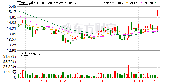 每经AI快讯,花园生物(SZ 300401,收盘价:14.91元)12月15日晚间发布公告称,公司第七届第十四 次董事会会议于2025年12月15日以通讯表决方式召开。会议审议了《关于修改 <公司章程> 的议案》等 文件。 2024年1至12月份,花园生物的营业收入构成为:维生素占比65.08%,医药制造行业占比34.92%。 截至发稿,花园生物市值为81亿元。 每经头条(nbdtoutiao)——"一针两千,童颜针年销3亿元"背后:多家关联方注册地"查无此人",股民 追问"钱呢"!钱氏姐弟几乎"掏空"江苏吴中,公司即将退市 (记者 曾健辉) ...