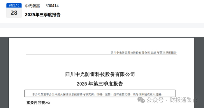 风险提示:本文为财报教学文章,不包含推荐行为,请勿据此操作,注意安全。 利润暴增343%,瑞银、 摩根大通 同时入驻, 中光防雷 究竟藏着什么秘密? 读财报就像当侦探,每个数字都是线索,每份报表都藏着秘密。今天,财官带你破解中光的财报密码, 看看这家看似普通的防雷企业,为何能吸引国际顶级投行的目光。 利润之谜:惊人增长背后的隐忧 翻开中光的最新财报,净利润1713万元,同比增长343% 的数据格外引人注目。这个增长速度在制造业 中实属罕见,足以让任何投资者心动。 | 科目 年度 | 2025-09-30 | | --- | --- | | 净利润(元) | 1713.49万 342.89% | | 净利润同比增长率 | 342.89% 466.26% | | 扣非争利润(元) | 978.275公众每1106%官 | 更值得玩味的是,销售毛利率达到26.82%,同比提升16%。这意味着公司的产品竞争力在显著增强,或 者产品结构正在向高附加值方向转变。 | 盈利能力指标 | | | --- | --- | | 销售净利率 | 4.88% 310.08% | | 销售毛利率 | 26.82% 15.75% | | ...