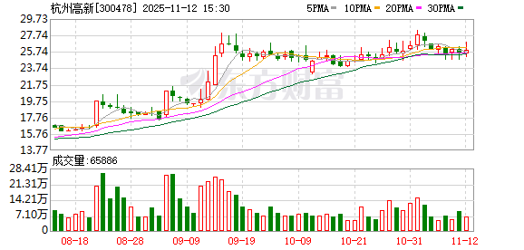 杭州高新跌2.00%,成交额7449.37万元,主力资金净流出885.68万元