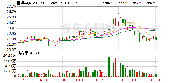 | 交易日期 | 证券代码 | 证券简称 | 成交价格 | 成交量 | 成交金额 买方营业部 | 卖方营业部 | | --- | --- | --- | --- | --- | --- | --- | | | | | (元) | (万股/万份) | (万元) | | | 2025-09-30 | 300484 | 蓝海华腾 | 19.27 | 12.70 | 244.73 中信建投证券股份 | 中国银河证券股份 | | | | | | | 有限公司北京望京 | 有限公司深圳华侨 | | | | | | | 证券营业部 | 城证券营业部 | | 2025-09-30 | 300484 | 蓝海花园 | 19.27 | 10.50 | 202.34 西部证券股份有限 | 中国银河证券股份 | | | | | | | 公司西安曲江池西 | 有限公司深圳华侨 | | | | | | | 路班券营不部 | 城证券营业部 | 9月30日,蓝海华腾大宗交易成交23.2万股,成交额447.07万元,占当日总成交额的2.57%,成交价19.27 元,较市场收盘价22元折价12.41%。 ...