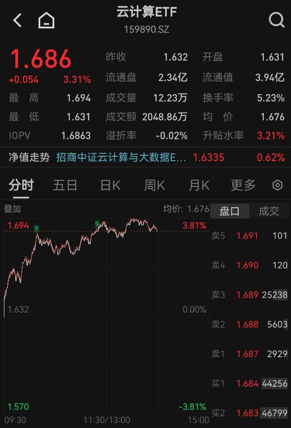 午后狂飙!光模块双雄涨超7%,云计算ETF(159890)大涨3.31%