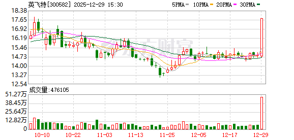 英飞特12月24日现1笔大宗交易 总成交金额400万元 溢价率为-12.61%
