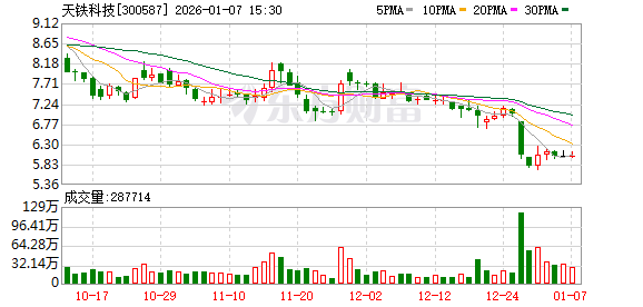 1月6日,天铁科技涨0.00%,成交额2.06亿元。两融数据显示,当日天铁科技获融资买入额2336.23万 元,融资偿还2108.25万元,融资净买入227.98万元。截至1月6日,天铁科技融资融券余额合计5.30亿 元。 截至9月30日,天铁科技股东户数2.24万,较上期减少11.26%;人均流通股46993股,较上期增加 15.98%。2025年1月-9月,天铁科技实现营业收入12.32亿元,同比减少30.69%;归母净利润-5799.58万 元,同比减少340.02%。 融资方面,天铁科技当日融资买入2336.23万元。当前融资余额5.30亿元,占流通市值的7.89%,融资余 额超过近一年80%分位水平,处于高位。 融券方面,天铁科技1月6日融券偿还400.00股,融券卖出100.00股,按当日收盘价计算,卖出金额 602.00元;融券余量7.43万股,融券余额44.73万元,低于近一年40%分位水平,处于较低位。 资料显示,浙江天铁科技股份有限公司位于浙江省天台县人民东路928号,成立日期2003年12月26日, 上市日期2017年1月5日,公司主营业务涉及轨道工程橡胶制品的研发、生产和销售。主营业务 ...