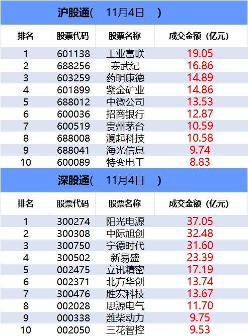 沪深股通成交概况 - 沪深股通今日合计成交2409.10亿元,其中沪股通成交1201.61亿元,深股通成交1207.49亿元 [1][2] - 沪股通个股成交额首位为工业富联,成交19.05亿元 [1][3] - 深股通个股成交额首位为阳光电源,成交37.05亿元 [1][3] 板块与个股资金流向 - 银行板块主力资金净流入29.81亿元,净流入率为6.58%,居板块首位 [1][5] - 电新行业主力资金净流出114.73亿元,净流出率为4.66%,居板块流出首位 [5][6] - 个股方面,工商银行主力资金净流入6.21亿元,净流入率17.46%,居流入榜第一 [7] - 阳光电源主力资金净流出15.72亿元,净流出率7.89%,居流出榜第一 [8] ETF市场动态 - 香港证券ETF(513090)以96.438亿元成交额位居ETF成交额首位 [9][10] - 银行ETF天弘(515290)成交额环比增长203.26%,达4.3721亿元,居成交额环比增长榜首 [1][11] 股指期货持仓变动 - 四大期指主力合约多空双方均减仓,IM主力合约空头减仓1668手,数量较多 [12] 龙虎榜机构与资金动向 - 海峡创新20cm涨停,四家机构买入2.24亿元 [1][14] - 万里马20cm涨停,三家一线游资席位合计买入1.4114亿元 [1][16] - 万里马获两家量化席位合计买入1.2372亿元 [1][17]