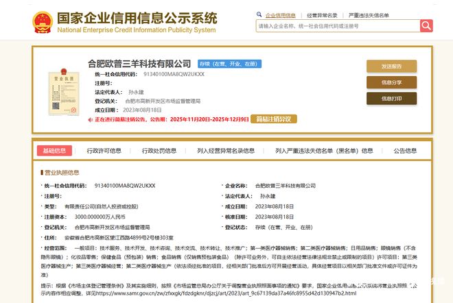 跨界联盟告终?欧普康视与“疯狂小杨哥”合资公司已启动注销