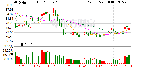 1月22日,锦浪科技盘中上涨2.01%,截至10:33,报79.28元/股,成交4.00亿元,换手率1.58%,总市值 315.62亿元。 资金流向方面,主力资金净流入996.38万元,特大单买入3159.21万元,占比7.91%,卖出2490.52万元, 占比6.23%;大单买入1.14亿元,占比28.46%,卖出1.10亿元,占比27.64%。 分红方面,锦浪科技A股上市后累计派现6.60亿元。近三年,累计派现3.18亿元。 机构持仓方面,截止2025年9月30日,锦浪科技十大流通股东中,香港中央结算有限公司位居第五大流 通股东,持股471.63万股,相比上期减少26.75万股。易方达创业板ETF(159915)位居第六大流通股 东,持股471.49万股,相比上期减少79.95万股。南方中证500ETF(510500)位居第八大流通股东,持 股348.93万股,相比上期减少4.79万股。光伏ETF(515790)位居第九大流通股东,持股272.31万股, 为新进股东。天弘中证光伏A(011102)位居第十大流通股东,持股183.02万股,为新进股东。广发高 端制造股票A(004997)退出十大流通股东之列 ...
