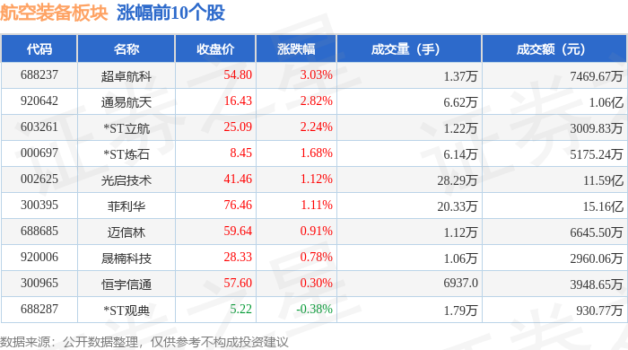 航空装备板块市场表现 - 11月12日航空装备板块整体下跌1.28%,表现弱于大盘,当日上证指数下跌0.07%,深证成指下跌0.36% [1] - 三角防务领跌板块,跌幅达7.09%,航发科技下跌4.75%,西部超导下跌4.59% [2] - 板块内部分个股逆势上涨,超卓航科上涨3.03%,通易航天上涨2.82%,*ST立航上涨2.24% [1] 板块资金流向 - 当日航空装备板块主力资金净流出14.35亿元,显示机构资金大幅撤离 [2] - 游资资金净流入3.17亿元,散户资金净流入11.18亿元,表明中小投资者在承接抛压 [2] - 迈信林获得主力净流入994.07万元,主力净占比14.96%,航亚科技主力净流入505.88万元 [3] 个股交易活跃度 - 光启技术成交额达11.59亿元,菲利来成交额15.16亿元,三角防务成交额16.28亿元,显示这些个股交易活跃 [1][2] - 三角防务成交量55.58万手,烽火电子成交量27.78万手,博云新材成交量24.21万手 [2] - 部分小市值股票交易相对清淡,如恒宇信通成交量6937手,*ST观曲成交量1.79万手 [1]
