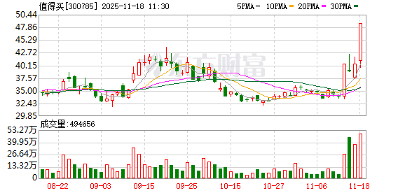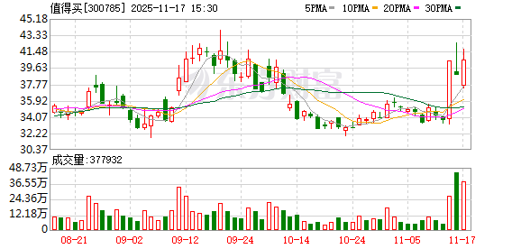 据天眼查APP显示,北京值得买科技股份有限公司成立于2011年11月10日,注册资本19885.5243万人民 币。(数据宝) (文章来源:证券时报网) 数据宝统计,截至11:17,值得买成交额20.79亿元,创上市以来新高。最新股价上涨18.52%,换手率 38.09%。上一交易日该股全天成交额为15.02亿元。 ...