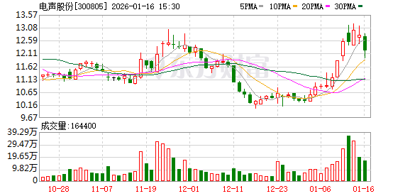 | 交易日期 | 证券代码 | 证券简称 | 成交价格 | 成交量 | 成交全额 买方营业部 | 卖方营业部 | | --- | --- | --- | --- | --- | --- | --- | | | | | (元) | (万股/万份) | (万元) | | | 2026-01-27 | 300805 | 电声股份 | 11.35 | 17.70 | 200.90 机构专用 | 国海证券股份有限 | | | | | | | | 公司武汉三眼桥路 | | | | | | | | 证券营业部 | | 2026-01-27 | 300805 | 电声股份 | 11.35 | 17.66 | 200.44 国泰海通证券股份 | 国海证券股份有限 | | | | | | | 有限公司哈尔滨果 | 公司武汉三眼桥路 | | | | | | | 戈里大街证券营业 | 证券营业部 | | | | | | | ਸ਼ਦ | | 1月27日,电声股份大宗交易成交35.36万股,成交额401.34万元,占当日总成交额的1.3%,成交价11.35元,较市场收盘价 12.97元折价12.49%。 ...