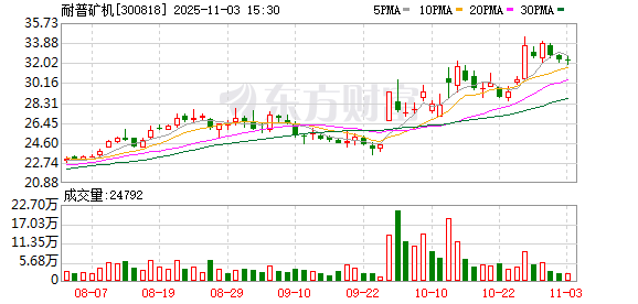 股价表现与交易数据 - 10月31日盘中下跌2.05%,报32.03元/股,成交额5641.95万元,换手率1.59%,总市值54.06亿元 [1] - 当日主力资金净流出694.77万元,大单买入占比10.02%,卖出占比22.34% [1] - 今年以来股价上涨18.24%,近5个交易日上涨5.19%,近20日上涨9.35%,近60日上涨41.85% [2] - 9月25日登上龙虎榜,当日净买入1077.27万元,买入总额占总成交额24.91%,卖出总额占22.19% [2] 公司基本面与财务数据 - 2025年1-9月实现营业收入7.14亿元,同比减少22.46%,归母净利润6249.96万元,同比减少48.07% [3] - 主营业务收入构成为:矿用橡胶耐磨备件71.25%,矿用金属备件14.05%,选矿设备10.44%,矿用管道3.69%,其他0.57% [2] - A股上市后累计派现9352.81万元,近三年累计派现7462.81万元 [4] 股东结构与机构持仓 - 截至10月20日股东户数9992户,较上期减少21.54%,人均流通股10957股,较上期增加27.45% [3] - 截至2025年9月30日,富国长期成长混合A新进为第五大流通股东,持股167.19万股,华宝多策略增长A增持11万股至160万股,东方红收益增强债券A新进为第十大股东,持股100万股 [4] 公司概况与行业属性 - 公司成立于2005年10月14日,于2020年2月12日上市,主营重型矿山选矿装备及其新材料耐磨备件的研发、生产、销售及服务 [2] - 所属申万行业为机械设备-通用设备-磨具磨料,概念板块包括一带一路、有色铜、工程机械、新材料、基金重仓等 [2]