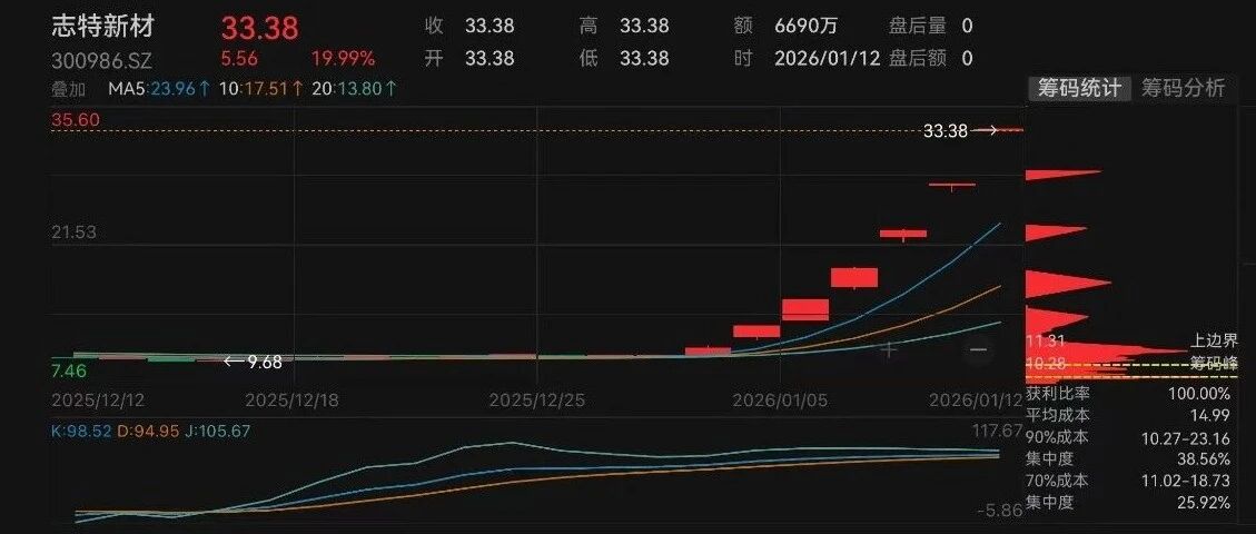 年内首只翻倍股停牌核查!志特新材1月13日起停牌,已斩获六连板