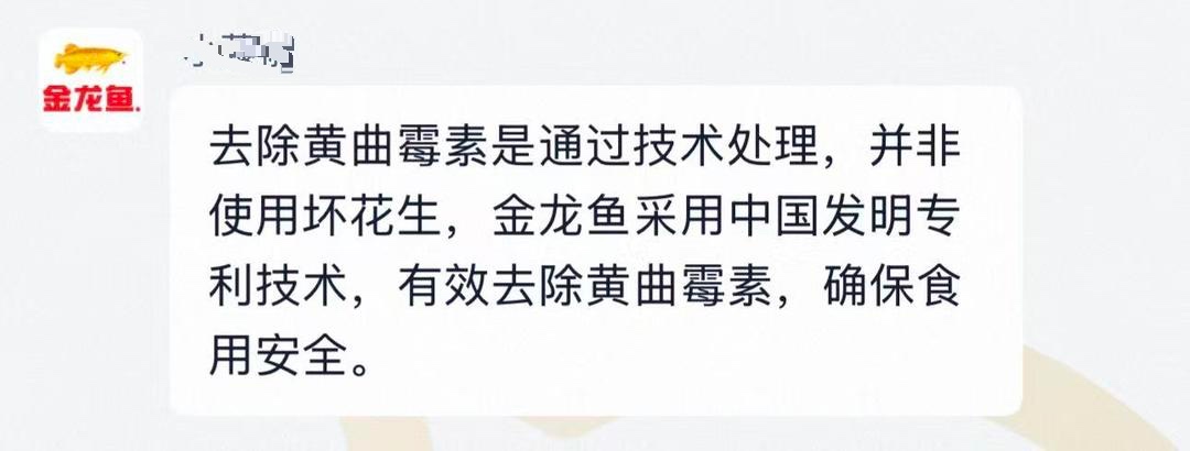齐鲁晚报·齐鲁壹点记者 周小涵 李家澍 近日,有网友发现,金龙鱼一款纯正花生油产品外包装上印有"去除黄曲霉毒素技术"的宣传标识,这不禁让他对这款花生油的食用安全问题产生了疑虑。 金龙鱼客服 资料显示,黄曲霉毒素是黄曲霉、寄生曲霉等真菌产生的一类剧毒次生代谢产物,属于WHO(世界卫生组织)划定的一类致癌物,食用黄曲霉毒素超标 的食品,短期可能出现恶心、呕吐、腹痛等中毒症状,长期摄入会增加患肝癌风险,免疫力低下人群风险更高。 记者搜索发现,胡姬花古法小榨花生油、中粮福临门压榨一级花生油、海天天赐良谷特香花生油等多款市面上热销的知名食用油品牌包装中,都未有"去 除黄曲霉毒素"的标识。鲁花5S物理压榨一级花生油包装并未有明显标注,但在其商品详情页则写有"去除花生油黄曲霉毒素技术"。 花生油商品详情页 鲁花5S物理压榨一级 1月5日,山东农业工程学院教授陈宇航在接受采访时表示,花生油在出厂前,只要是商品化的产品都有一个国家标准。我国食品安全国家标准对各类食品 中的黄曲霉毒素含量有严格限量规定,在国标GB 2761-2017中要求黄曲霉毒素B₁的含量不得超过20μg/kg。 陈宇航进一步解释,并非变质的花生才含有黄曲霉毒 ...
