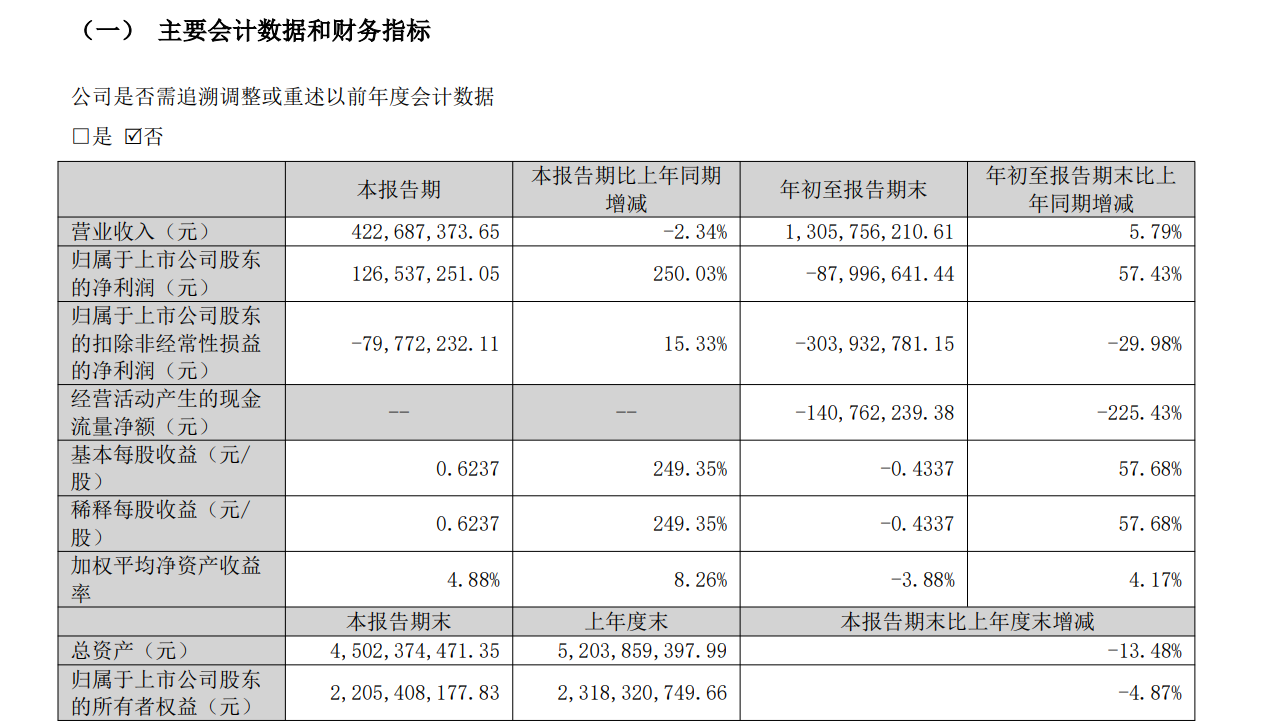 中国经济网北京10月22日讯 信濠光电(301051.SZ)昨日晚间披露2025年第三季度报告。 今年前三季度,公司实现营业收入13.06亿元,同比增长5.79%;归属于上市公司股东的净利润为-8799.66万 元;归属于上市公司股东的扣非净利润为-3.04亿元;经营活动产生的现金流量净额为-1.41亿元。 | | 本报告期 | 本报告期比上年同期 | 年初至报告期末 | 年初至报告期末比上 | | --- | --- | --- | --- | --- | | | | 增减 | | 年同期增减 | | 营业收入(元) | 422,687,373.65 | -2. 34% | 1,305,756,210.61 | 5.79% | | 归属于上市公司股东 | 126,537,251.05 | 250. 03% | -87, 996, 641. 44 | 57. 43% | | 的净利润(元) | | | | | | 归属于上市公司股东 | | | | | | 的扣除非经常性损益 | -79,772,232.11 | 15.33% | -303, 932, 781. 15 | -29.98% | | 的净利润(元 ...