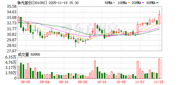 资金流向方面,今日该股主力资金净流入1.01亿元,其中,特大单净流入1.42亿元,大单资金净流出 4113.29万元。近5日主力资金净流入1.03亿元。(数据宝) 争光股份11月20日交易公开信息 争光股份今日涨停,全天换手率19.17%,成交额4.62亿元,振幅20.58%。龙虎榜数据显示,机构净卖出 665.79万元,营业部席位合计净买入3681.49万元。 深交所公开信息显示,当日该股因日收盘价涨幅达20.00%上榜,机构专用席位净卖出665.79万元。 证券时报·数据宝统计显示,上榜的前五大买卖营业部合计成交1.36亿元,其中,买入成交额为8284.51 万元,卖出成交额为5268.81万元,合计净买入3015.70万元。 具体来看,今日上榜的营业部中,共有1家机构专用席位现身,即卖三,买入金额346.37万元,卖出金 额1012.16万元,合计净卖出665.79万元。 | 买/ | 会员营业部名称 | 买入金额(万 | 卖出金额(万 | | --- | --- | --- | --- | | 卖 | | 元) | 元) | | 买一 | 开源证券股份有限公司西安西大街证券营业部 | 2102.76 ...