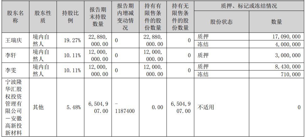 股东减持计划 - 股东安徽高新投新材料产业基金合伙企业计划减持公司股份不超过3,562,200股,占公司总股本的3% [1] - 通过集中竞价方式减持股份不超过1,187,400股,减持比例不超过公司总股本的1% [1] - 通过大宗交易方式减持股份不超过2,374,800股,减持比例不超过公司总股本的2% [1] - 减持计划自公告披露之日起15个交易日后的未来3个月内实施 [1]