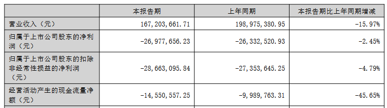 2022年至2024年,公司营业收入分别为3.51亿元、3.74亿元、4.42亿元,归属于上市公司股东的净利润分别 为-1,795.92万元、-9,353.84万元、-6,579.00万元,归属于上市公司股东的扣除非经常性损益的净利润分别 为-3,134.71万元、-9,771.25万元、-6,702.45万元,经营活动产生的现金流量净额分别为782.06万元、-1,364.14万 元、2,435.17万元。 | | 2024 年 | 2023 年 | 本年比上年增減 | 2022年 | | --- | --- | --- | --- | --- | | 营业收入(元) | 442. 106. 672. 28 | 373, 831, 957. 90 | 18. 26% | 351. 469. 621. 35 | | 归属于上市公司股东 的净利润(元) | -65.790.026.68 | -93.538.376.83 | 29. 67% | -17, 959, 174. 02 | | 归属于上市公司股东 的扣除非经常性损益 的净利润(元) | -67.024.458.91 | -97.712.483.07 | ...