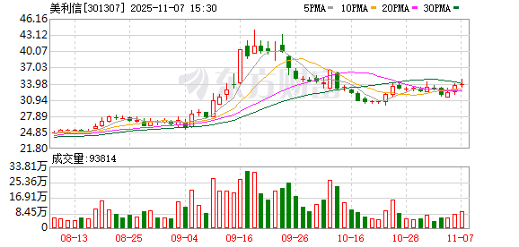 美利信跌2.03%,成交额2.30亿元,主力资金净流出799.98万元