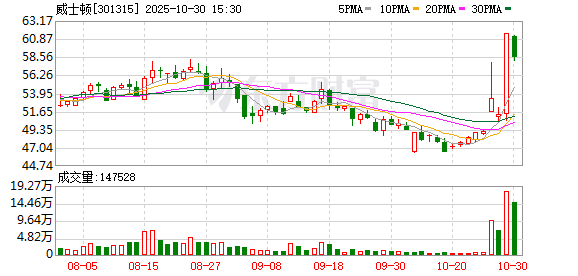 威士顿换手率48.37%,机构龙虎榜净买入2649.85万元