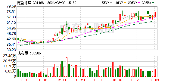 公司股价与交易表现 - 2月4日,博盈特焊股价下跌5.18%,报收69.31元/股,成交额4.49亿元,换手率8.31%,总市值90.18亿元 [1] 公司基本情况 - 公司全称为广东博盈特焊技术股份有限公司,位于广东省江门市鹤山市,成立于2007年3月28日,于2023年7月24日上市 [1] - 公司主营业务为防腐防磨堆焊装备、非堆焊的锅炉部件、压力容器及高端钢结构件的研发、生产和销售 [1] - 主营业务收入构成中,防腐防磨堆焊产品占比71.57%,其他业务占比28.43% [1] 基金持仓情况 - 德邦基金旗下产品“德邦新兴产业混合发起式A(023674)”在四季度重仓博盈特焊,持有4.19万股,占基金净值比例为5.13%,为第五大重仓股 [2] - 基于2月4日股价下跌测算,该基金持仓单日浮亏约15.88万元 [2] 相关基金信息 - 德邦新兴产业混合发起式A(023674)成立于2025年3月25日,最新规模为1392.41万元 [2] - 该基金今年以来收益率为18.78%,在同类8873只基金中排名第189位,成立以来收益率为21.86% [2] - 该基金经理为袁之渿,累计任职时间317天,现任基金资产总规模6485.47万元,任职期间最佳基金回报为14.69%,最差基金回报为-11.47% [3]