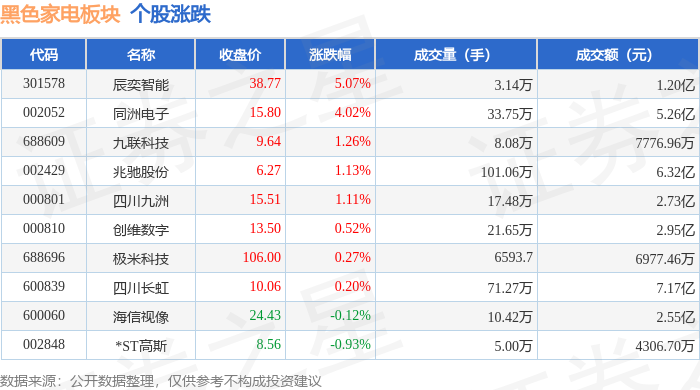 黑色家电板块10月23日涨0.09%,辰奕智能领涨,主力资金净流出6731.31万元