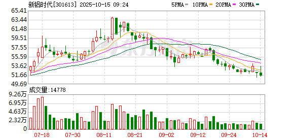 新铝时代10月13日获融资买入1209.66万元,融资余额1.92亿元