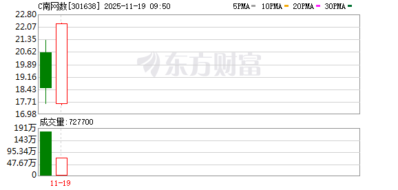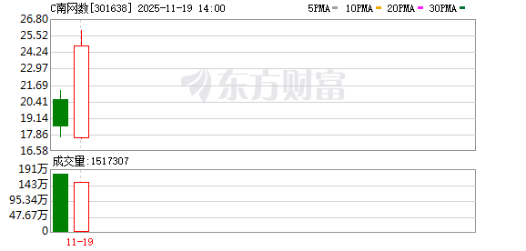 11月18日,南方电网数字电网研究院股份有限公司在深交所正式挂牌上市,上市首日开盘涨261.51%, 截至收盘涨幅回落至224.78%。 11月19日,次新股C南网数字午后涨超30%,该股早盘一度触发临停。 编辑丨瑜见 ...