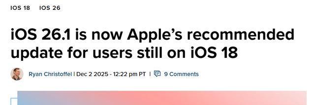 iOS 26.1取代旧版成首推更新,用户升级需手动确认