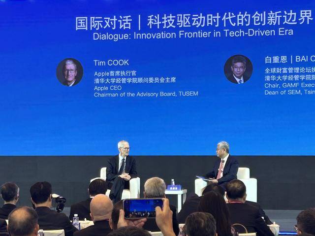 "中国年轻开发者的创造力真的是非常厉害、非常棒,令人非常印象深刻。我拜访了世界各地,我们觉 得中国在这方面是最好的,他们的创造力是最棒的。"库克说。 以"世界变革下的未来之路"为主题的全球财富管理论坛·2025上海苏河湾大会18日上午举行。苹果公司 首席执行官蒂姆·库克与全球财富管理论坛执委会主席、清华大学经管学院院长白重恩进行对话。 库克认为,人们对AI的使用不需要太紧张,AI会带来积极作用。在人们生活的方方面面,AI都给人们 提供了很多帮助,也拯救了很多人。他不担心电脑像人一样思考,但更担心人像电脑那样思考。人需要 保持创新和激情,而不是像电脑一样冷冰冰的。 库克说,他在北京拜访了一家开发公司,这家公司使用AI很好地做美工,令他印象深刻。AI还能非常 自主地进行迭代,发展速度非常快。中国开发者开发程序应用AI的速度也很快,令人难以置信,中国 的开发者社区积极拥抱AI技术。 谈到苹果公司使用AI的情况,库克说,AI应用在苹果已经十分常见,很多人不觉得它是AI,而当成是 日常工作的一部分。苹果还用AI培训大量销售人员,公司的每个环节都有AI。他表示,如果一家企业 没有部署AI,就会丧失竞争力,也会错失增长收入 ...