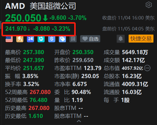美股异动|AMD盘前续跌超3% Q3业绩超预期但指引未能打动投资者