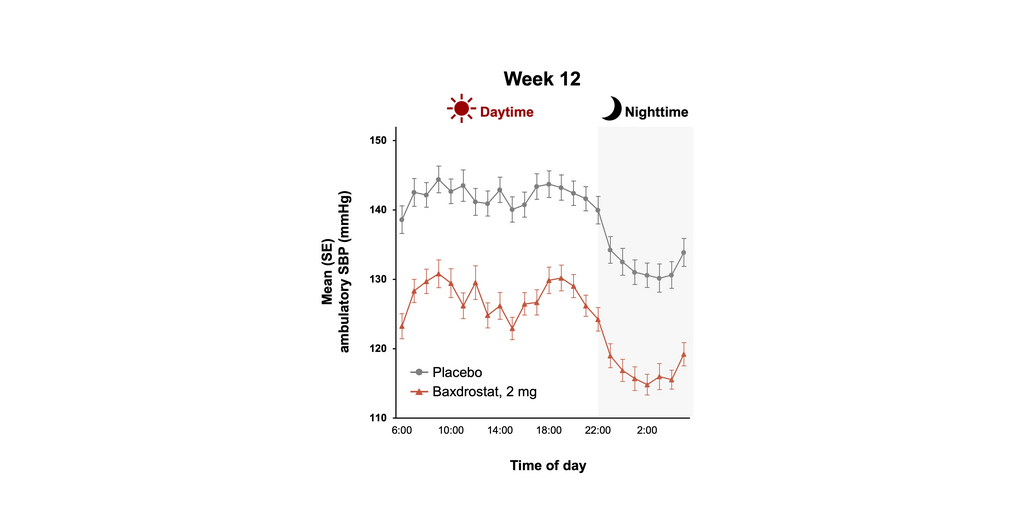 Baxdrostat demonstrated a statistically significant and highly clinically meaningful placebo-adjusted reduction of 14.0 mmHg in 24-hour ambulatory systolic blood pressure in patients with resistant hypertension in the Bax24 Phase III trial