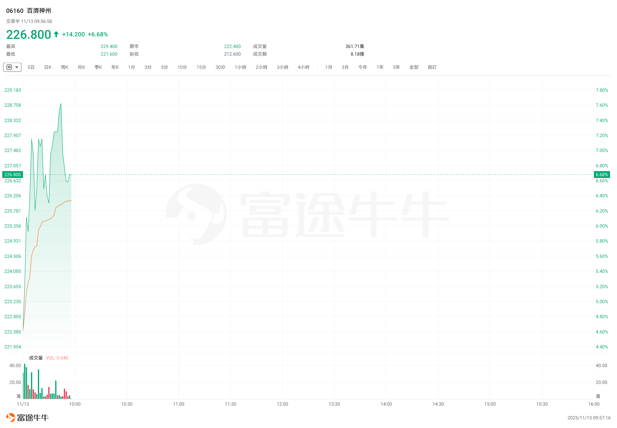 百济神州再涨,周内累涨近20%!公司前三季度归母净利润11.39亿元,泽布替尼美欧市场放量超预期