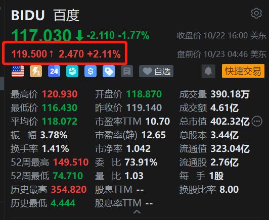 美股异动 | 热门中概股普涨 百度(BIDU.US)涨逾3%