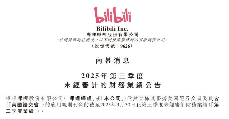 BILIBILI(BILI) - 2025 Q3 - Quarterly Results
