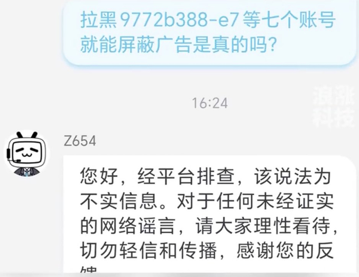 B站否认拉黑用户可屏蔽广告,称系预加载机制导致