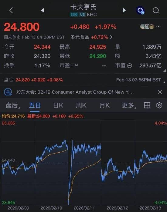 卡夫亨氏战略转向与伯克希尔立场 - 卡夫亨氏新任CEO史蒂夫·卡希莱恩上任五周后,宣布暂停去年9月公布的卡夫与亨氏分拆计划,他认为公司机遇比预期更大,挑战可控[1] - 伯克希尔作为卡夫亨氏第一大股东,持股27.5%,当前市值约81亿美元,其CEO格雷格·阿贝尔公开支持暂停分拆的决定,认为此举可让管理层专注于提升竞争力与服务客户[2] - 此前,巴菲特曾对分拆计划表示不赞同,称“感到失望”,并不排除减持甚至清仓股份[2] 伯克希尔的潜在行动与市场反应 - 三周前,阿贝尔向SEC提交文件,计划最多减持截至9月30日所持3.256亿股卡夫亨氏股份的99.9%,释放出大幅减持的强烈信号[2] - 卡夫亨氏决定维持整体运营,或能避免伯克希尔的减持计划真正落地[3] - 卡夫亨氏股价在宣布暂停分拆后一度下跌,但随后迅速反弹,全周小幅上涨0.7%[5] 伯克希尔近期动态与市场关注点 - 伯克希尔预计将向SEC提交截至12月31日的四季度末持仓报告,市场重点关注是否继续减持苹果、美国银行股票,以及三季度新建仓的谷歌仓位是否加仓[7] - 投资组合经理托德·康布斯已于12月加盟摩根大通,其管理仓位将如何调整受到关注[7] - 格雷格·阿贝尔的首封致股东年度信将于2月28日发布,同时披露公司年报、四季度财报及5月2日股东大会信息[7] 伯克希尔财务与持仓概况 - 伯克希尔A类股股价为751,425.00美元,B类股股价为497.55美元,市盈率(TTM)为15.91,公司市值为1.076万亿美元[8] - 截至9月30日,公司现金储备为3817亿美元,较6月30日增长10.9%,剔除铁路现金及应付国库券后为3543亿美元,较6月30日增长4.3%[8] - 自2024年5月以来,公司未进行股票回购[8] - 截至2026年2月13日,伯克希尔主要持仓包括:苹果(持股1.6%,价值609.8亿美元,占投资组合19.0%)、美国运通(持股22.1%,价值512亿美元,占15.9%)、可口可乐(持股9.3%,价值315.8亿美元)、美国银行(持股7.9%,价值299亿美元,占9.3%)、雪佛龙(持股6.2%,价值224亿美元,占7.0%)等[9]