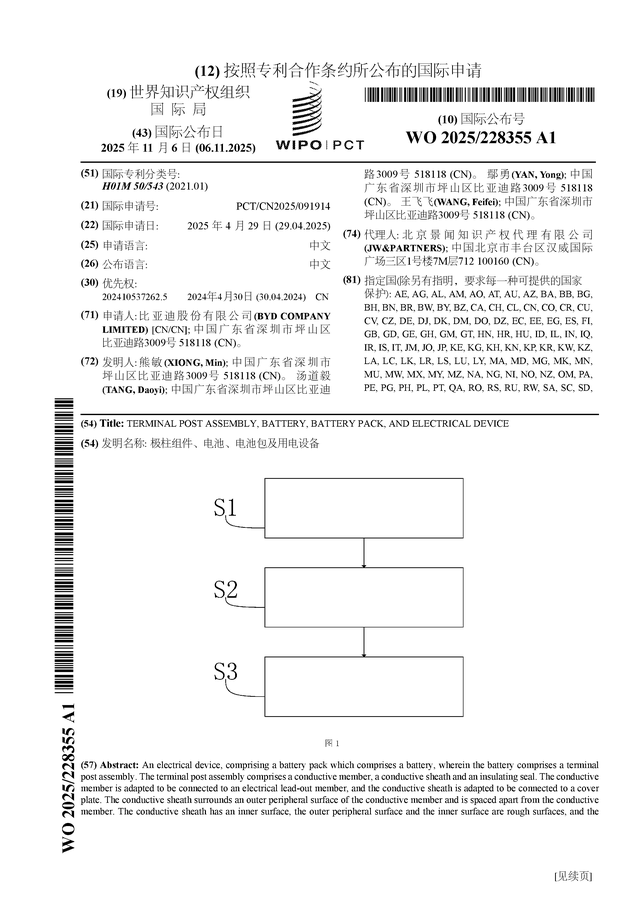 比亚迪公布国际专利申请:“正极补锂材料及其制备方法、正极、电池及用电设备”