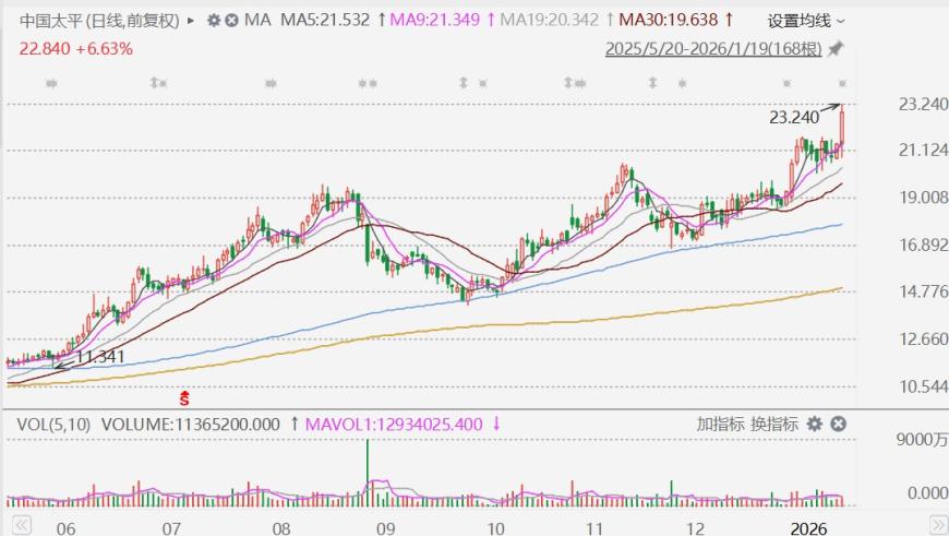 港股异动 | 中国太平(00966)午后涨超8% 预计2025年度纯利同比增加约215%至225%