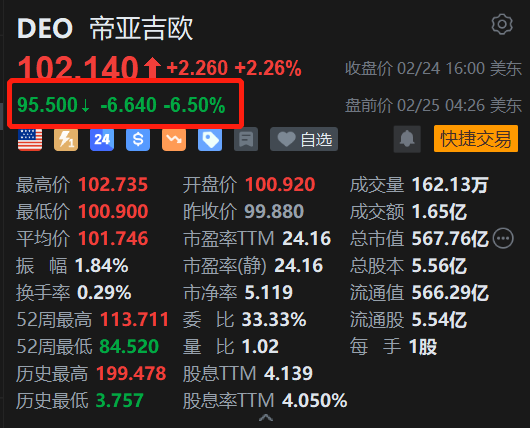 美股异动 | 下调2026财年利润指引 帝亚吉欧(DEO.US)盘前大跌超12%