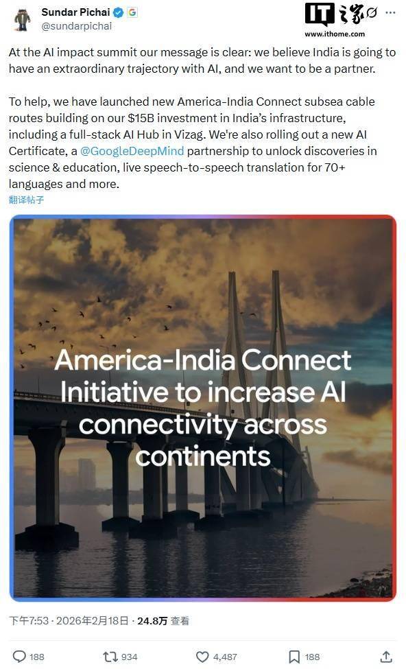 公司投资计划 - 公司启动名为“美印连接”的基础设施计划,旨在通过新建海底光缆和陆上光纤线路,提升横跨美国、印度、澳大利亚、非洲四大洲的网络连接能力 [1] - 该计划是公司此前承诺的五年150亿美元(约合1037.34亿元人民币)印度AI基础设施投资的重要组成部分 [1] - 计划目标是通过新建数字基础设施与技能培训倡议,提升印度及全球范围内的网络连接性,并缩小“数字鸿沟”向“AI鸿沟”转化的风险 [1] 基础设施部署详情 - 公司将在印度东海岸的维沙卡帕特南建立一个新的国际海缆登陆站,并新增三条连接印度与新加坡、南非和澳大利亚的海缆路径 [3] - 项目还将部署四条战略性光纤路由,以增强美国、印度及南半球多个地点之间的网络容量和冗余能力 [3] - 在东海岸,将建设一条从维沙卡帕特南经钦奈通往南非的直连线路,与现有的Equiano和Nuvem系统结合,形成从美国东海岸绕过非洲直达维沙卡帕特南的高容量冗余线路 [4] - 维沙卡帕特南还将新增一条直连新加坡的线路,与Bosun和Tabua系统配合,构建从美国西海岸经澳大利亚通往维沙卡帕特南的南太平洋线路 [4] - 这些投资将使维沙卡帕特南成为印度又一个重要的国际海缆登陆站,与现有的孟买和钦奈登陆站形成互补,显著增强印度数字骨干网的韧性 [4] - 在西海岸,将建设一条从孟买直连澳大利亚西部的光纤路径,结合TalayLink和Honomoana系统,形成另一条从美国西海岸经澳大利亚抵达孟买的南太平洋线路 [4] - 这一新线路与现有的Blue、Raman和Sol海缆系统(构成从美国东海岸经红海至孟买的数据走廊)相辅相成 [4] 数字技能与AI可及性举措 - 除基础设施建设外,公司将同步推进数字技能培训项目,以确保AI转型的惠及面更广 [5] - 公司云部门已与印度政府的“Karmayogi Bharat”数字使命达成合作,作为其iGOT Karmayogi在线培训平台的主要云合作伙伴 [5] - 合作将为印度全国800多个地区的超过2000万公职人员提供安全、可扩展的学习基础设施 [5] - 合作将利用AI技术增强平台学习体验,包括将历史培训资料数字化为可搜索的知识资产,并逐步支持超过18种印度语言,使公职人员能够用母语学习 [5] - 这些投资是公司在非洲、澳大利亚和太平洋地区与数十家区域合作伙伴共同推进AI可及性工作的延续,未来将继续合作,将AI的益处带给所有人 [5]