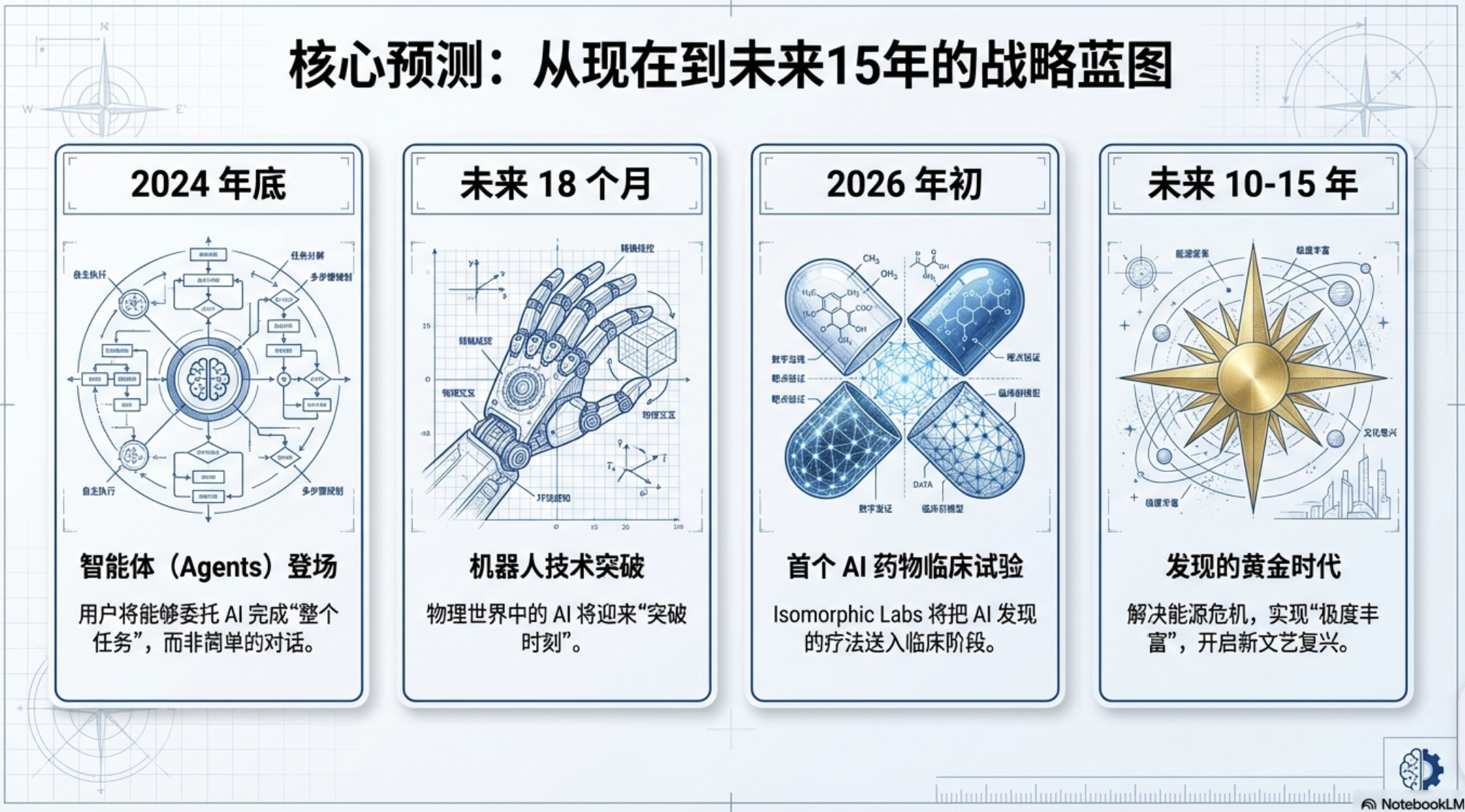 核心观点 - 谷歌DeepMind首席执行官Demis Hassabis在达沃斯论坛上描绘了AI发展的宏伟蓝图,核心是解决智能问题并用其解决其他所有问题,包括药物研发、能源危机等,预言未来10到15年人类将迎来“发现的黄金时代”和“新文艺复兴” [2][8][58] AI在生物医药领域的颠覆性潜力 - 通过其创立的Isomorphic Labs,目标是在2026年初将首个AI设计的药物送入临床试验 [4] - Isomorphic Labs正在研究癌症、心血管疾病和免疫学等多个治疗领域,已有17个药物项目正在推进,并计划扩展到数百个 [4][28] - 公司与礼来公司(Eli Lilly)等全球顶级制药巨头建立了合作伙伴关系 [4][28] - 传统药物研发平均耗时10年,耗资数十亿美元,成功率仅为10%,而AI的目标是将效率提高“几十万倍”,通过在“硅基”层面完成大部分搜索和设计工作,将实验室仅作为验证步骤 [4][25][28] - 此技术基于AlphaFold的突破,该模型解决了长达50年的蛋白质结构预测难题,以惊人准确性预测了2亿个蛋白质结构,并免费提供给全球300万研究人员使用 [19][21][22] 谷歌大模型Gemini与AI整合进展 - Gemini 3模型已经跨越了“分水岭时刻”,变得非常有能力,可用于研究、总结和编码等日常工作 [5][52] - 谷歌已重建基础设施,以便将最新模型的能力快速投射到搜索、YouTube、Chrome等核心产品端 [5][44] - 公司正在重拾“黄金时代”的特质,包括承担风险、快速发布和创新 [5][38] - 谷歌在2023年将DeepMind和Google Brain两个AI团队合并,以集中人才和计算资源,推动下一代AI发展 [34][36] - 2025年,谷歌在AI开发方面取得进展,包括推出热门图像生成模型Nano Banana和Gemini 3,推动母公司Alphabet股价上涨约65%,创下自2009年以来的最佳表现 [41][42][43] AI代理(Agents)、机器人技术与未来产品形态 - AI代理和更自主的系统将在2025年年底真正开始显现,用户可以将整个任务委托给它们 [6][52] - 智能眼镜被认为是潜在的杀手级应用载体,AI技术是使其真正可行的关键拼图,公司内部有关于“通用助手”的概念,该助手将跨越手机、电脑和眼镜等所有设备 [6][53][55] - 预测在接下来的18个月左右,将会看到机器人技术的突破时刻 [7][53] 对未来的宏观展望 - 未来10到15年,如果发展得当,人类将迎来一个新的“发现黄金时代”和一场“新文艺复兴” [2][58] - 人类健康将被彻底改变,个性化医疗将成为现实 [7][58] - AI还将用于解决能源危机(如核聚变、太阳能、电池技术),最终将人类带入一个“极度丰富”的世界,并有能力去“探索银河系” [7][58] - AI领域的变革速度极快,感觉几乎每年都在发生巨大变化,2025年也不例外 [8][52] 公司背景与战略 - Demis Hassabis于2010年联合创立DeepMind,公司使命是“解决智能问题,然后用它来解决其他所有问题” [14][15] - 谷歌在2014年以约5亿美元收购了DeepMind,此次收购被视作商业史上最具变革性的时刻之一,为谷歌奠定了AI领域的基础 [14][15] - 谷歌创始人拉里·佩奇和谢尔盖·布林深度参与公司的AI战略和具体项目,如Gemini [39][40] - 公司管理强调将世界一流的跨学科团队(如生物学家、化学家、机器学习专家和工程师)聚集在一起,并倡导持续改进(Kaizen)的文化 [31][35][37]