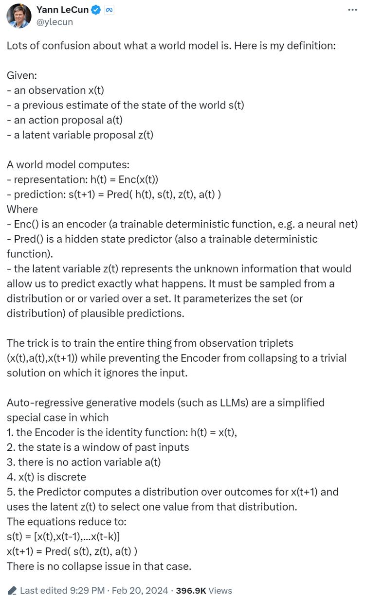 世界模型,已经像这个世界一样混乱了。 OpenAI指着Sora生成的视频说,这就是"世界模拟器";杨立昆(Yann LeCun)指着Sora,说它是像素幻 觉,真正的世界模型应该是"预测未来的抽象大脑";谷歌DeepMind称,Genie3就是一个"可交互的通用世 界模型";而李飞飞说,"空间智能"才是正解。 现实世界是唯一的、客观的,但AI圈里似乎人人都在制造属于自己的"世界模型"。 尽管定义南辕北辙,但这群吵得不可开交的大佬们,在一个基本判断上达成了共识:大语言模型早晚到 头,世界模型才是通往AGI的必经之路。 大语言模型在GPT-3.5之后经历了参数的膨胀,而世界模型在技术路线收敛之前,就先经历了概念的通货 膨胀。 世界模型是个筐,啥都往里装 "世界模型"的混乱,根源在于它是一种目的,指的是让AI具备理解外部世界规律,预测世界变化的能力, 而非具体的技术路径。 最先混乱的就是概念。 关于世界模型的思想,最早可追溯至1943年认知科学家Kenneth Craik提出的"心智模型(Mental Model)",即大脑通过构建外部世界的微缩模型来进行预测,换句话说,我们脑中有一个心智模型,不仅 能处理当前看到 ...