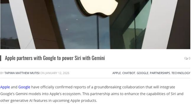 苹果与谷歌达成合作,以Gemini技术为Siri“注能”