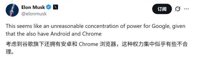 苹果与谷歌达成AI合作协议 - 苹果与谷歌宣布达成一项为期多年的合作协议,下一代苹果基础模型将依托谷歌的Gemini模型和云技术构建 [2] 埃隆·马斯克对合作的评论 - 埃隆·马斯克在社交平台发文,认为考虑到谷歌已掌控Android操作系统和Chrome浏览器,此次与苹果联手是“不合理的权力集中” [1] 埃隆·马斯克旗下公司的相关诉讼 - 马斯克旗下的xAI公司正在对苹果和OpenAI发起诉讼 [2] - 诉讼指控苹果将ChatGPT作为Siri和“苹果智能”的附加组件,这种排他性合作使得Grok等竞争对手在App Store无法公平竞争 [2] - 尽管外界普遍认为该指控缺乏支撑,但法院驳回了苹果和OpenAI的撤诉申请,案件目前按计划继续审理 [2]