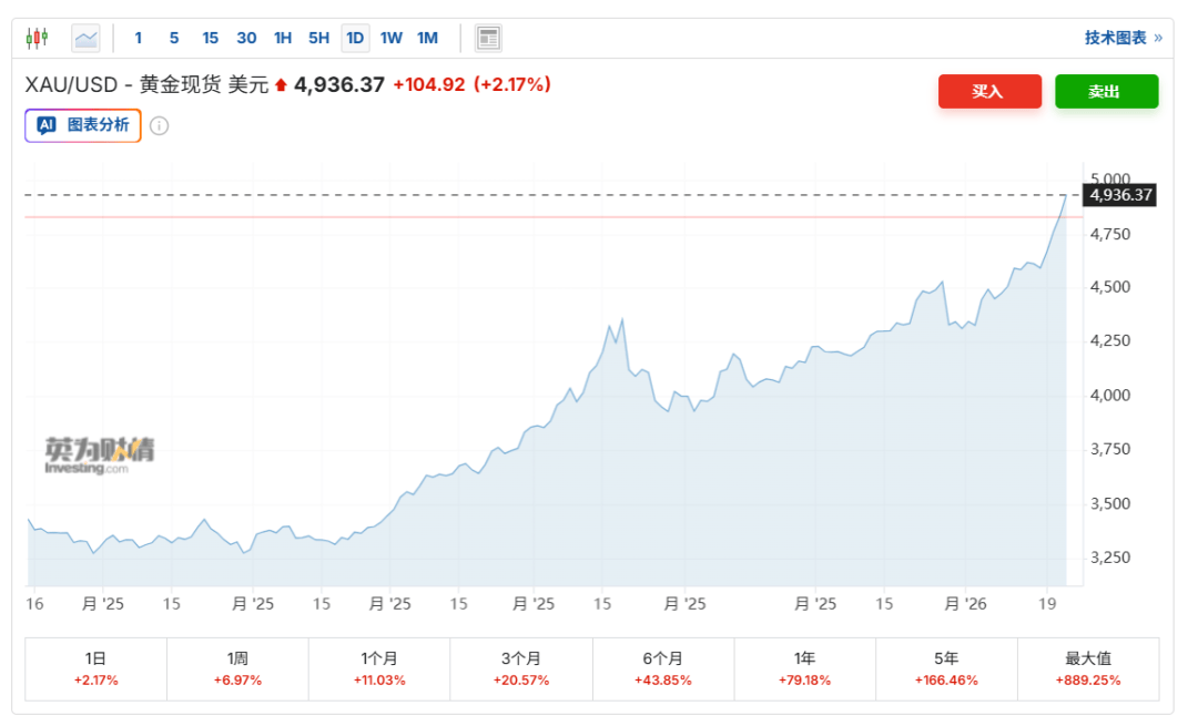 黄金价格突破4900美元/盎司,金价、银价,同创历史新高