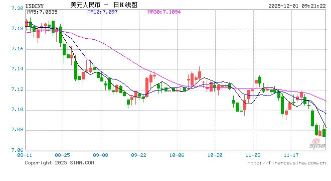 人民币兑美元中间价报7.0759上调30点,升值至2024年10月14日以来最高!高盛:美联储12月降息已成定局