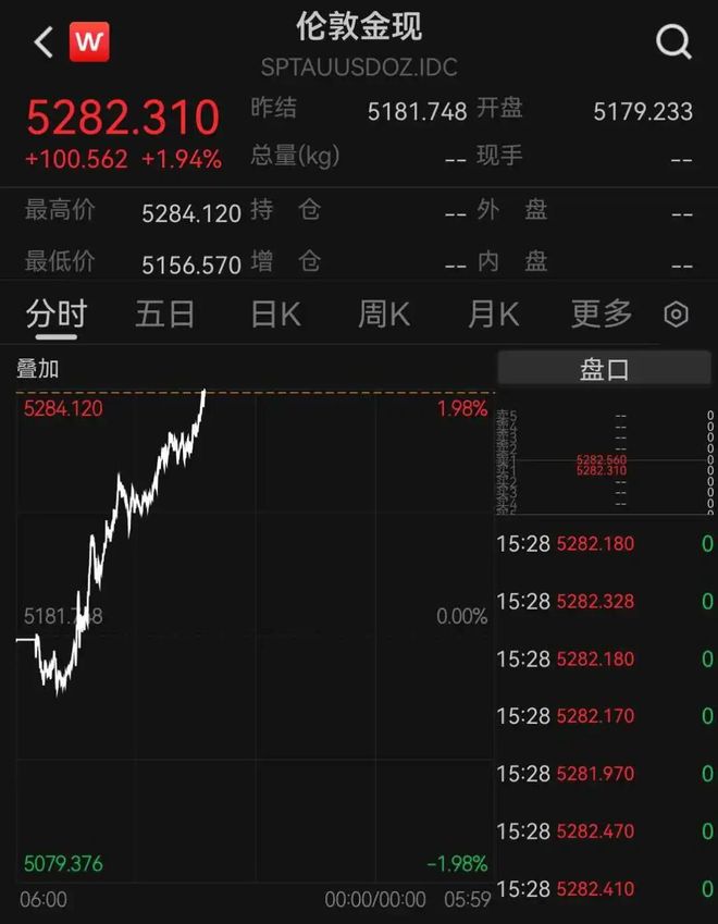 编辑丨瑜见 此前,高盛在研报中,将2026年12月的黄金目标价上调至5400美元/盎司。 1月28日, 现货黄金日内暴涨逾100美元,最新突破5282美元/盎司,涨幅1.94%。 ...